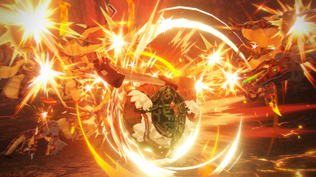 Je speelt niet als Link. Die bestaat in dit tijdperk nog niet eens. In plaats daarvan leid je prinses Zelda, koning Rauru, de Wijzen, en zelfs een aantal gloednieuwe personages die alleen in deze game voorkomen. Het is hack-and-slash gameplay zoals je die kent van Dynasty Warriors: jij tegen letterlijk honderden vijanden tegelijk.