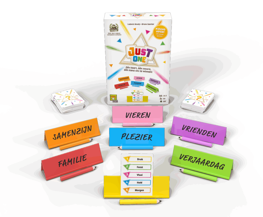 Just One is het ultieme ‘bruggenbouw-spel’. Het werkt met kinderen, met vrienden die al drie wijntjes op hebben, en met familieleden die spellen haten. Het duurt precies 20 minuten, maar je speelt het altijd een uur omdat niemand wil stoppen.